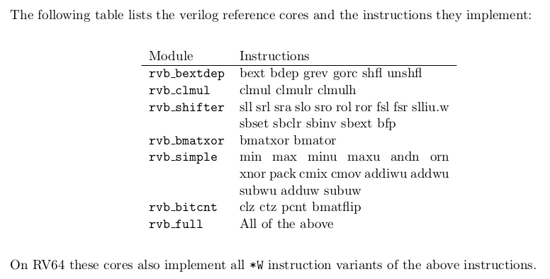 I've released version 0.91 of the RISC-V Bitmanip Spec a few days ago. https://github.com/riscv/riscv-bitmanip/blob/master/bitmanip-0.91.pdf … We added two new instructions, GORC and BFP, and changed the encodings of GREV and BMATXOR. The riscv-bitmanip branches of GNU tools and Spike already support the v0.91 bitmanip spec.