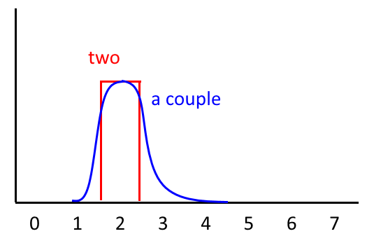I'm okay with "two" denoting a uniform distribution in the interval 1.5 to 2.5. But the fact that the area under the red curve is not the same as the area under the blue curve gives me all the feels.