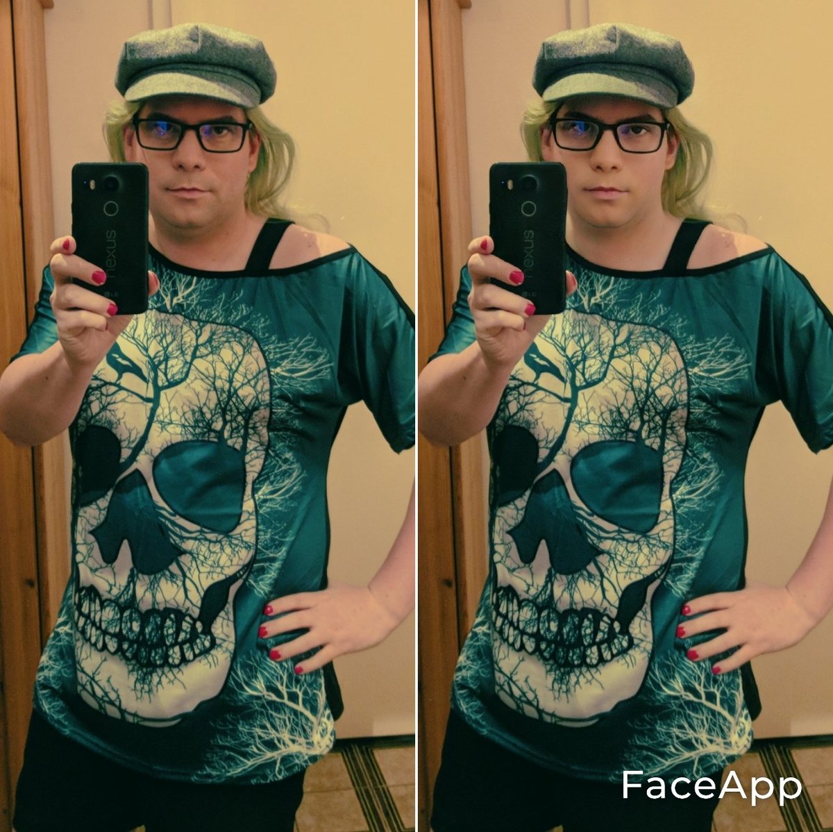 Playing with FaceApp. Left original, right "Young 2". (The female filters seem to do a similar transformation just with additional bad makeup.) So I guess it's telling me to lose more weight, get rid of the beard, and use a brighter foundation?pic.twitter.com/uBy6vevqXT