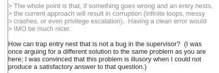 Some big brain thinking on RISC-V mailing lists: no need to have a double fault lockup, because this is a software bugpic.twitter.com/UNiFC5BqPL