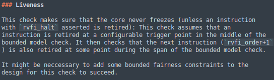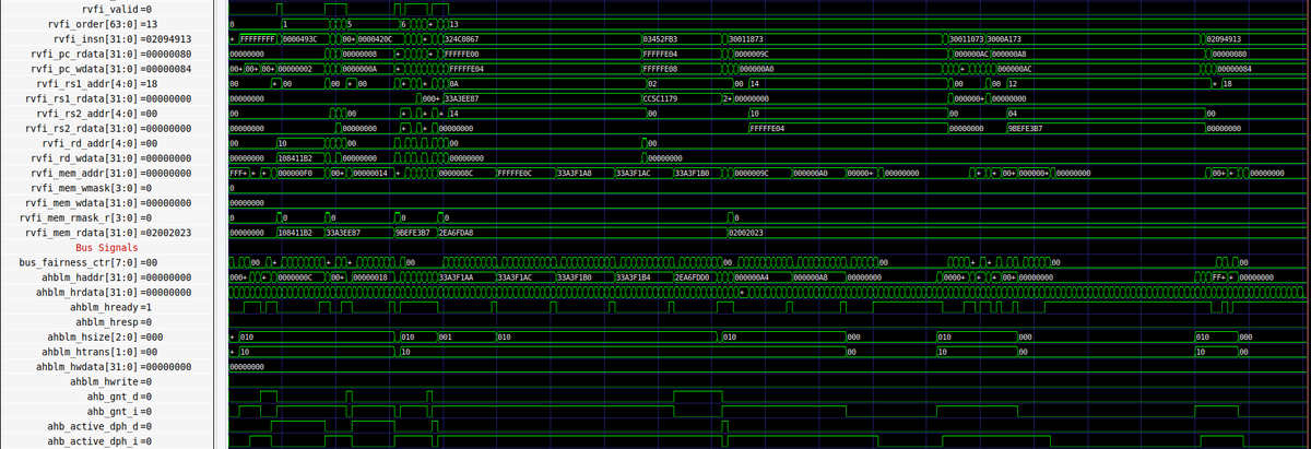 The liveness trace starts a multiply less than 32 cycles before end-of-test, and trips an assertion because no more instructions retire. Yup... that's what happens... Think this is a test configuration problem, but the docs are not so illuminating (or I need to find right part)pic.twitter.com/ETlEQHY2fQ