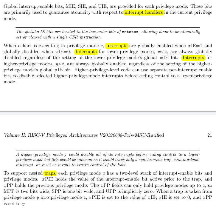 Trawling through the latest RISC-V privileged spec, and I still can't find the behaviour of illegal opcodes inside the illegal opcode handler. Nested exceptions are very loose in general, although the model for nested IRQs seems ok This is the gap riscv-formal is poking at