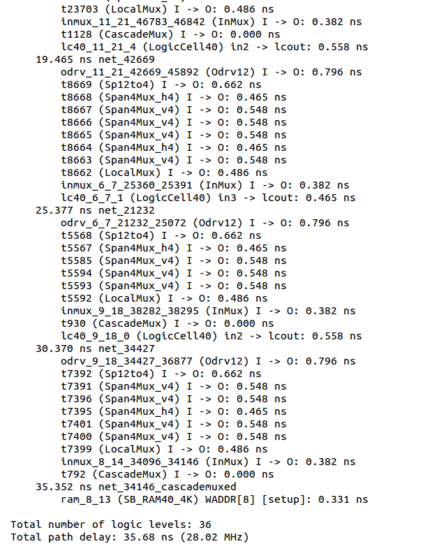 IceStorm Timing Analysis! In most cases IceStorm and Lattice results do not differ by more than 0.1 ns afaics.pic.twitter.com/zdx6qgZeIw
