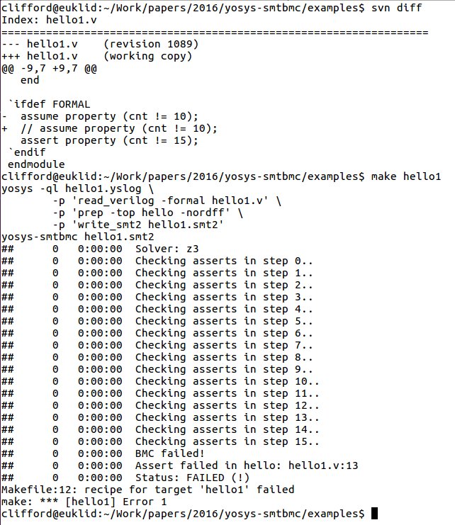 @oe1cxw After installing yosys-smtbmc, I tried the counter demo from your slides and replicated your success. However, I later >>