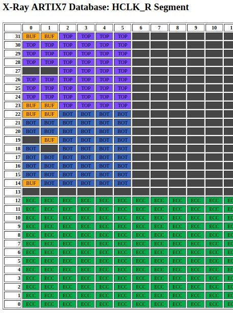 I think that's all the HCLK config bits. #progress Looked more complicated in the device viewer than it actually is. (Dark gray bits are bits that appear to be unused.) Visit us at the OpenFPGA assembly at #34C3.pic.twitter.com/Ais6DoWGHY