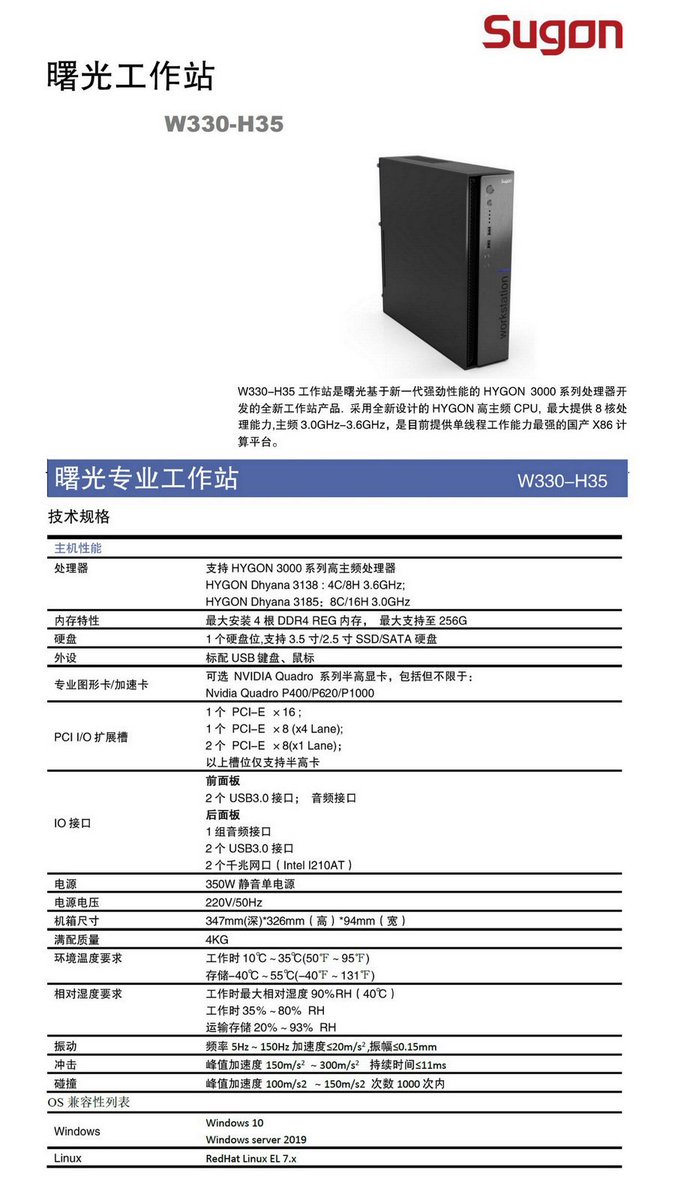 => "Hygon Dhyana Spotted an AMD EPYC Cousin", May 29, 2019 https://www.servethehome.com/hygon-dhyana-spotted-an-amd-epyc-cousin/ … At a small Computex 2019 booth, not even a server vendor https://twitter.com/ServeTheHome/status/1133673627323289600 … 曙光 W330-H30 https://static.sugon.com/www/uploads/file/20190216/1550301076-20449.pdf … 曙光 W330-H35 https://static.sugon.com/www/uploads/file/20190216/1550301137-92048.pdf … AMD, Apr 2016 https://twitter.com/ogawa_tter/status/1016337986122731521 …pic.twitter.com/eHAKoSnrCu