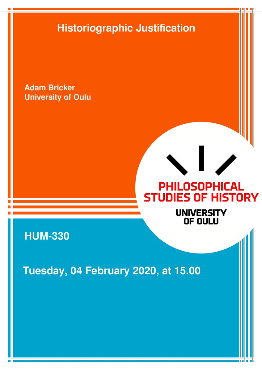 Our very own Adam Bricker will be giving the talk ”Historiographic Justification” next week at the Centre (04.02.20, 15h, HUM 330). More info: https://www.oulu.fi/centreforphilosophyofhistory/bricker2020 … All welcome!pic.twitter.com/QlnAAH3HZo