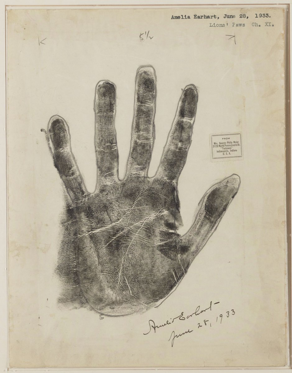 @librarycongress collection: A 1933 palm print by the aviation pioneer. Earhart was the first female aviator to fly solo across the Atlantic Ocean.#WomensHistoryMonth