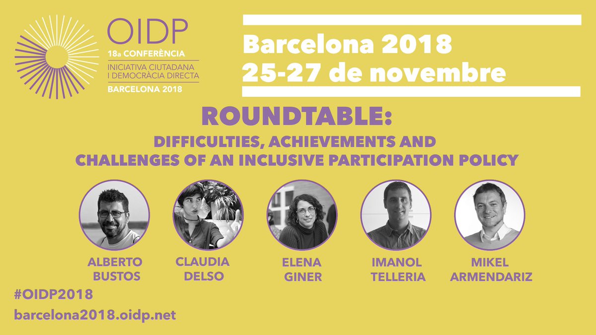 Roundtable 15-E: The legal regulation of citizen participation Why is it important to legally regulate the mechanisms of #citizenparticipation? 👉 http://barcelona2018.oidp.net/conferenceprogram?activity_session_id=132718 … #OIDP2018pic.twitter.com/W8bHhz5hbA