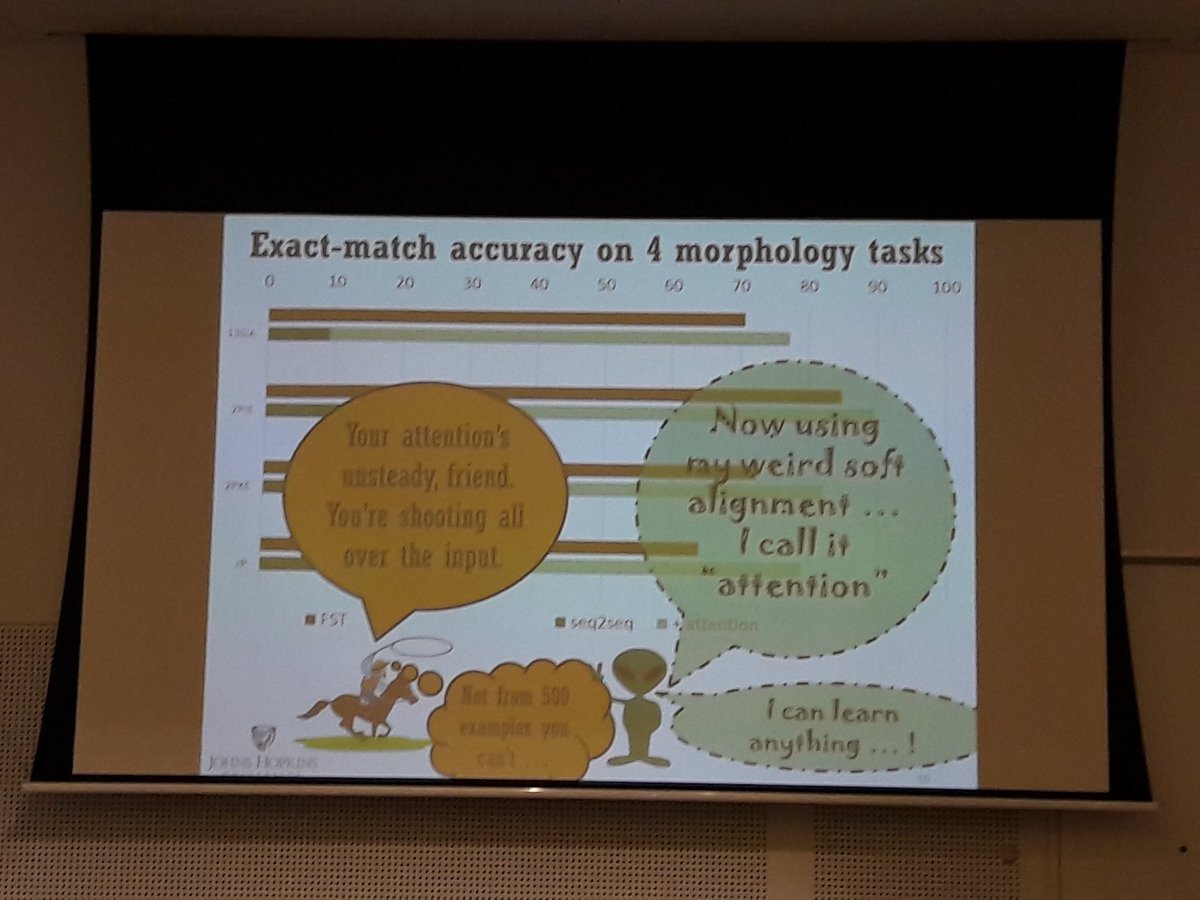 @adveisner extremely entertaining talk casts cowboys (FSTs) and aliens (seq2seq)#ACL2018pic.twitter.com/sQ3y2ikqea