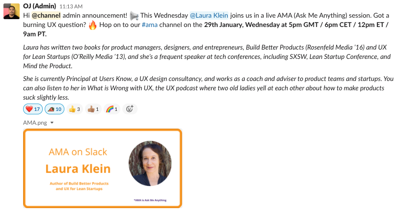 #AMA (Ask Me Anything) with@lauraklein on@betterux_ slack! https://betterux.community if you need to join! ping@ojmqd for more details or issues :)pic.twitter.com/Shw9Z86YfN