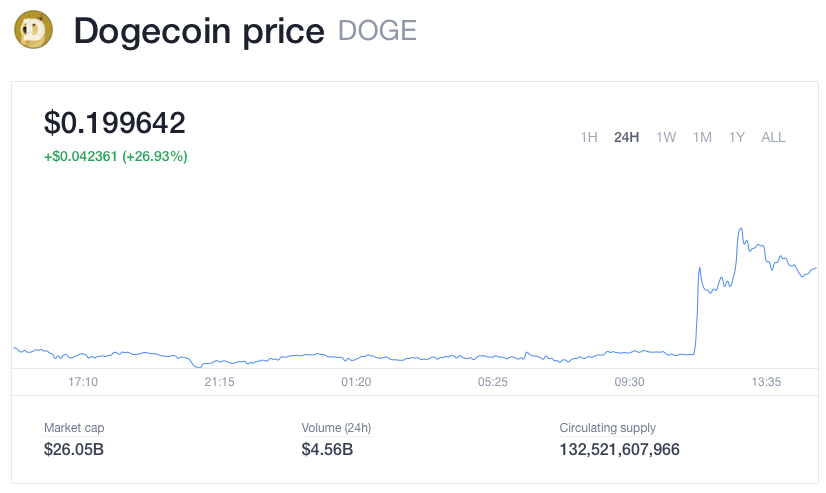 $DOGE market after tweeting about merchandise purchases. Crypto Market Daily: https://bit.ly/326BhUE Author:@XBT002 Editor:@0xMugenpic.twitter.com/AUWswXhbli