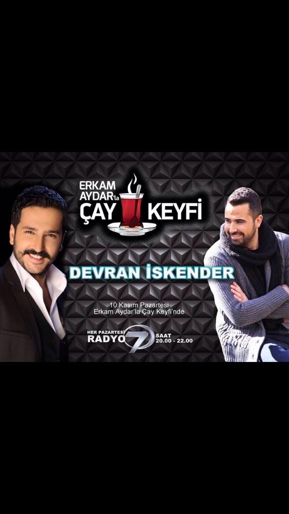 Bugün #erkamaydarlaçaykeyfi'nin konuğu güzel sesli arkadaşım @Devraniskenderr 20:00'da @radyo7 beklerim