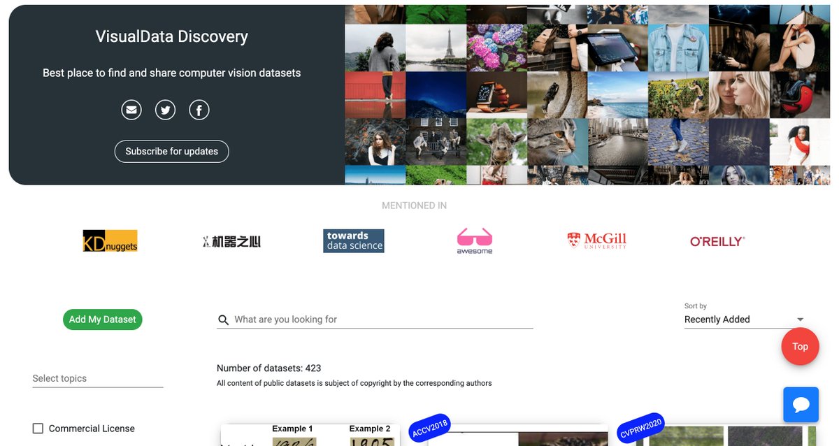 Fresh new look for http://visualdata.io ! Since launched in 2018, VisualData has grown to be a reliable source for discovering computer vision datasets which is inspiring and fun to use. We are excited to continue the effort in 2020 and offer more values for the community.pic.twitter.com/QqX3ouKciC