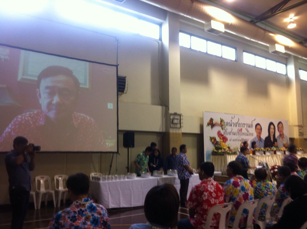พรรคเพื่อไทย จัดงาน รดน้ำสงกรานต์ โดยอดีตนายกฯทักษิณ ได้สไกป์ เข้ามาในงาน