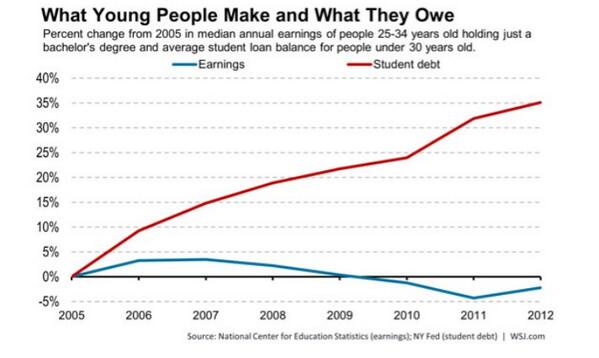 The problem with higher education boiled down to one chart. http://blogs.wsj.com/numbersguy/congatulations-to-class-of-2014-the-most-indebted-ever-1368/?mod=WSJBlog&utm_source=feedburner&utm_medium=feed&utm_campaign=Feed%3A+wsj%2Fnumbersguy%2Ffeed+%28WSJ.com%3A+The+Numbers+Guy%29 … via