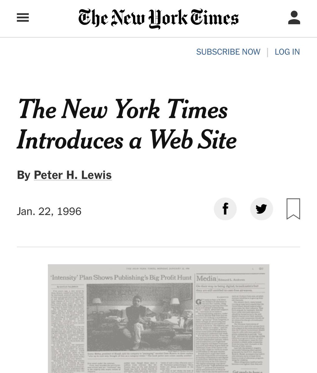 The primary and the mirror In 1996, when the New York Times first went online, the paper was primary and the website just a partial mirror. Today that is flipped. The paper is just a partial printout of the website. https://www.nytimes.com/1996/01/22/business/the-new-york-times-introduces-a-web-site.html …pic.twitter.com/CmR3LnrWXx