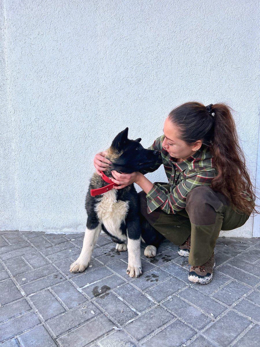 Привіт. Сьогодні я забрала до нас в «Паляницю» цю американську акіту, яку покинули власники під обстрілами. І оскільки я майстер тафтологій - ім’я їй теж буде Паляниця.
