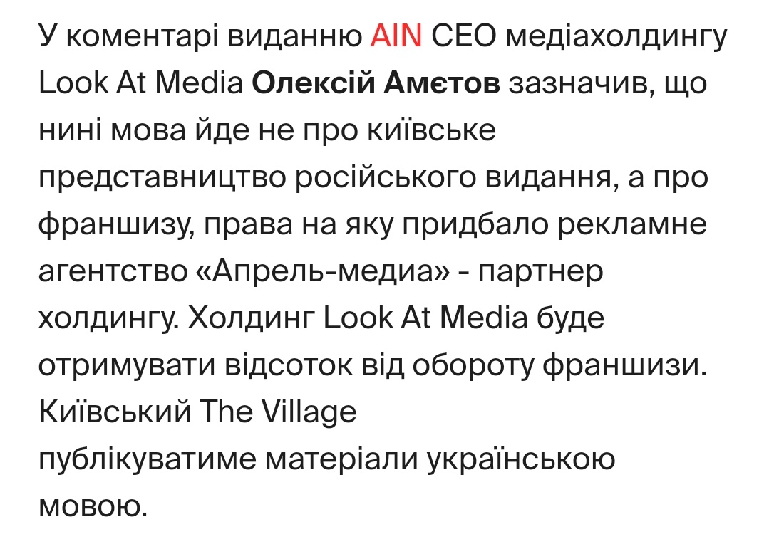 про The Village Україна в 2017 році Микола Балабан, який є власником «Апрель-медіа» купив право на франшизу в російського медіахолдингу (зараз Redefine)pic.twitter.com/RD34vyT6Cj