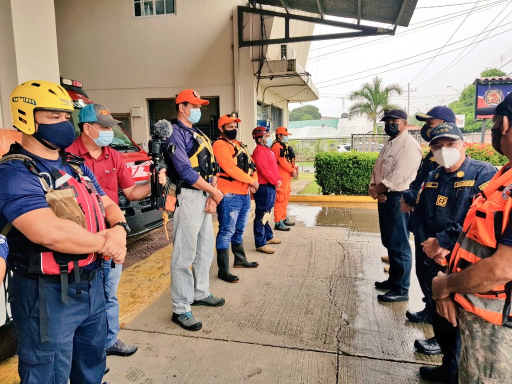 Bomberos inspeccionan el río Tonosí, en la provincia de Los Santos, que "en estos momentos se encuentra a su máximo nivel", señaló