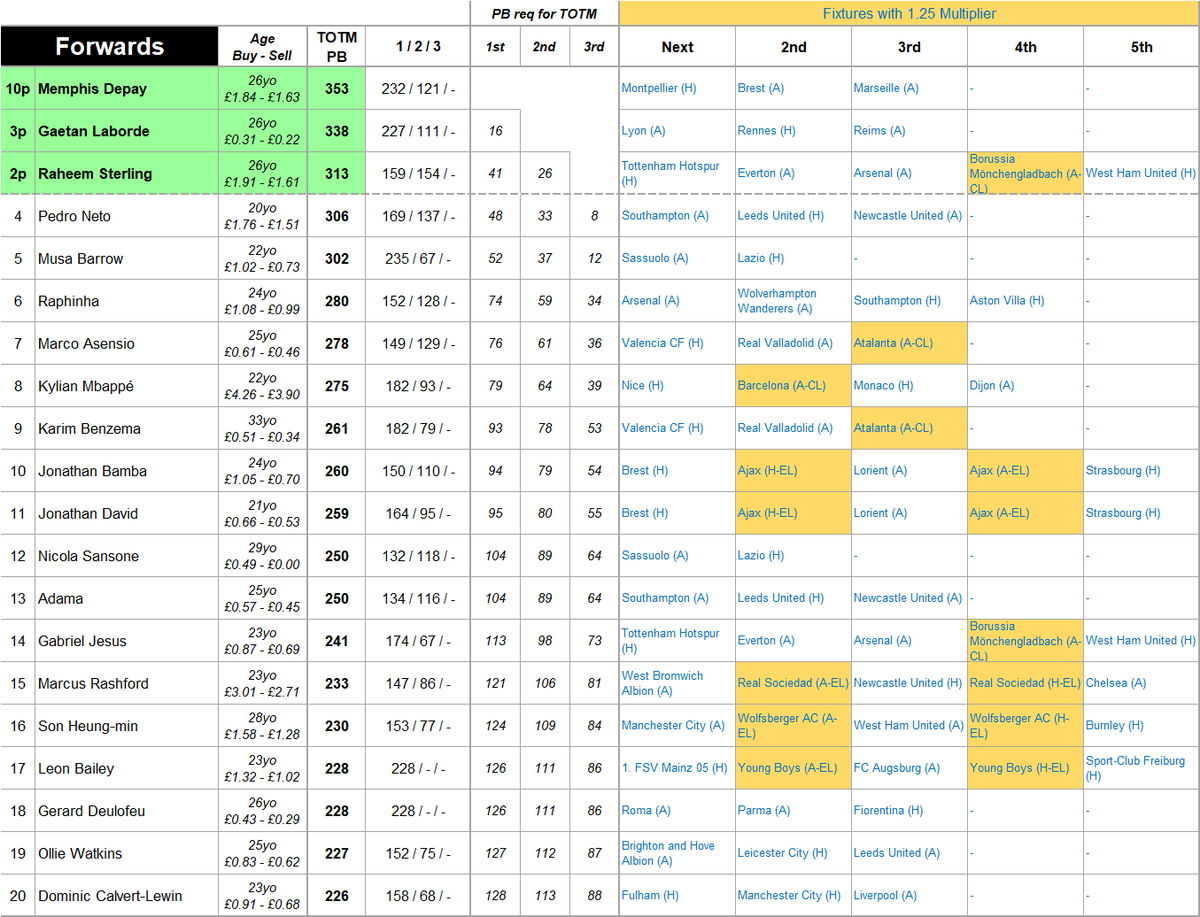 Latest TOTM positions in the meantime...