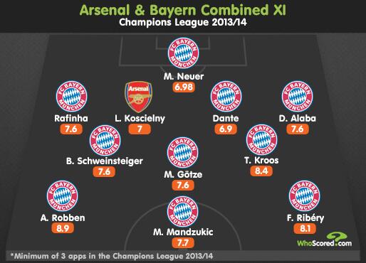 @wagwanwell "@WhoScored: GRAPHIC: Arsenal vs Bayern Munich - Combined XI #AFCvBAY pic.twitter.com/kEVNMm0Txk"