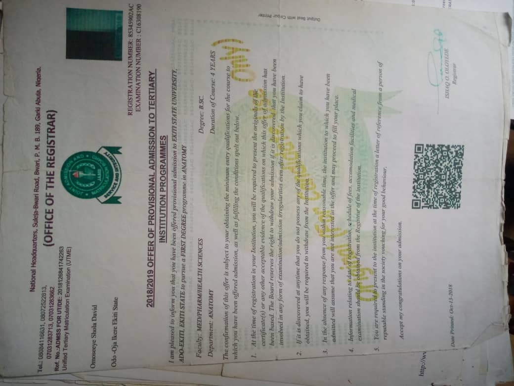 I'm Omoseeye shola David, a 200L student, studying Anatomy, Ekiti State University, I'm crying for help because my admission is coming to an abrupt end. Last session I was unable to write my exams due to the fact that I have been unable to pay my school fees since I got admitted.pic.twitter.com/D8opOvDOlU