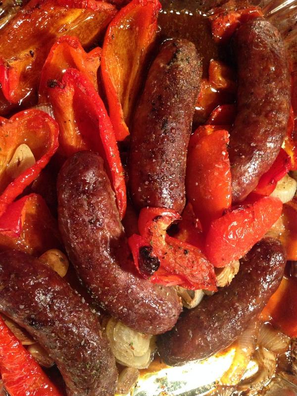 Oven-baked vinegar Italian sausage and peppers for stuffing into a baguette.pic.twitter.com/bQiYiutBma