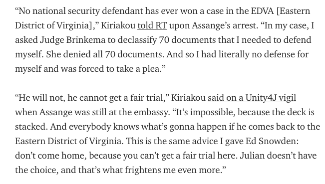 Of course, none of this matters, because they've succeeded in getting Assange locked up and awaiting extradition to a nation where those like @JohnKiriakou who've faced similar court proceedings say he stands no hope of a fair trial. https://medium.com/@caityjohnstone/smear-6-he-should-just-go-to-america-and-face-the-music-891ac6358ed3 …pic.twitter.com/URWZCODP6y