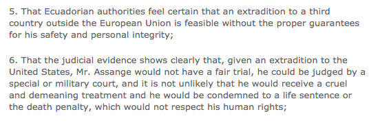 A common claim among Assange smearers is that he was "hiding from rape charges" at the Ecuadorian embassy. This was always idiotic. Governments don't protect people from rape charges. Ecuador was always open about why it gave Assange political asylum: http://www.ecuador.org/blog/?p=2120 pic.twitter.com/AsBZGjbkBu