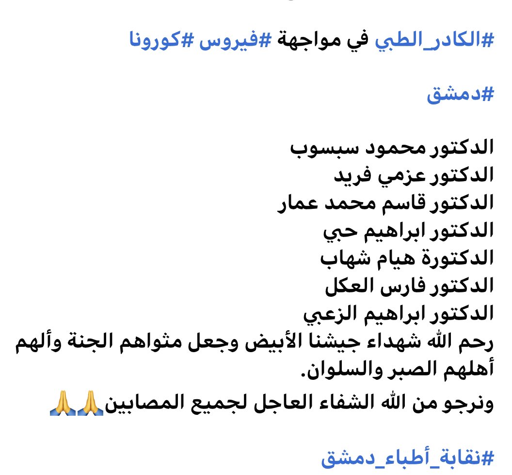 #COVID as announced by the Union of Doctors in the city. This is a sign of a virus out of control and lack of protection for healthcare workers in a country that is ravaged by war, brutal, secretive & corrupt regime & now COVIDpic.twitter.com/u7pU8taxJ2
