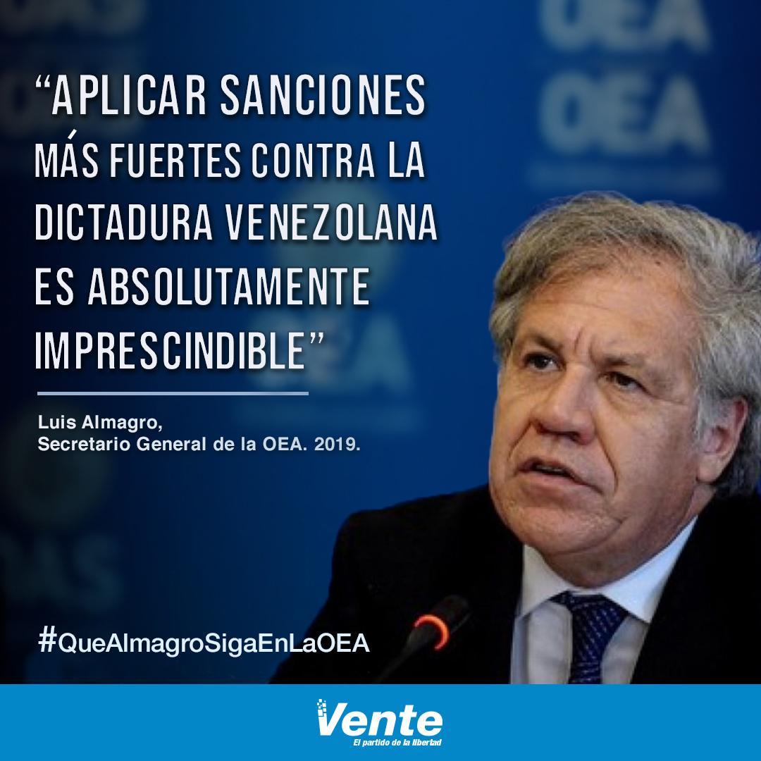 #QueAlmagroSigaEnLaOEA garantiza tener una voz firme y sin vacilaciones abogando por los venezolanos y haciendo frente al régimen de Maduro.pic.twitter.com/GxUwV1ssun