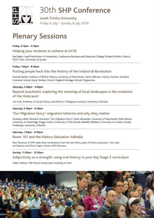 History teachers, sign up for SHP 2018 summer conf! Fab programme, incl. a plenary on