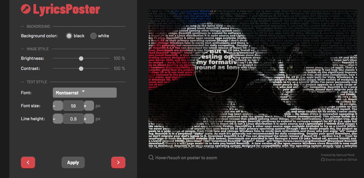 #OpenSource web app that lets you recreate a photo with text (designed for lyrics, but you can use any text). Here's a photo of my cat Penelope recreated using text from an upcoming blog post. https://lyricsposter.net/ pic.twitter.com/NU29PdZBZy