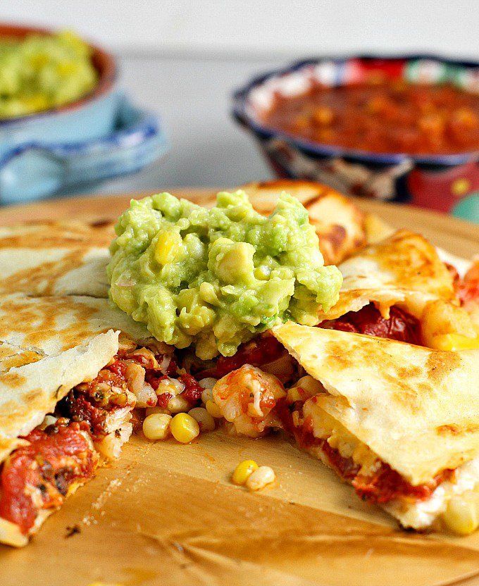 I LOVE the cilantro roasted tomatoes in these! Roasted Tomato, Corn and Shrimp Quesadilla via