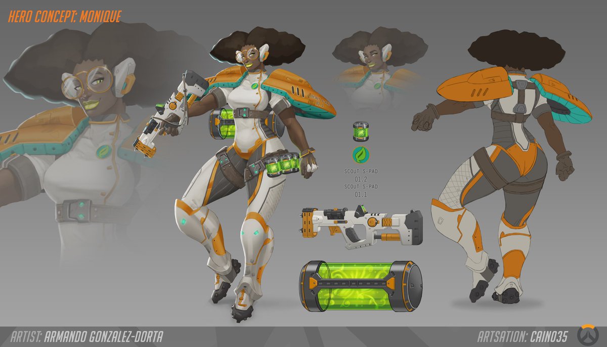 Hero Concept: Monique. Inspired by the world of #Overwatch . She is a Botanist who is constantly exploring. The roster is full of awesome heores, but we need an African American girl as well 😁 #conceptart #characterdesign #blizzard #BlackGirlsRockpic.twitter.com/sYxbBM1Gen