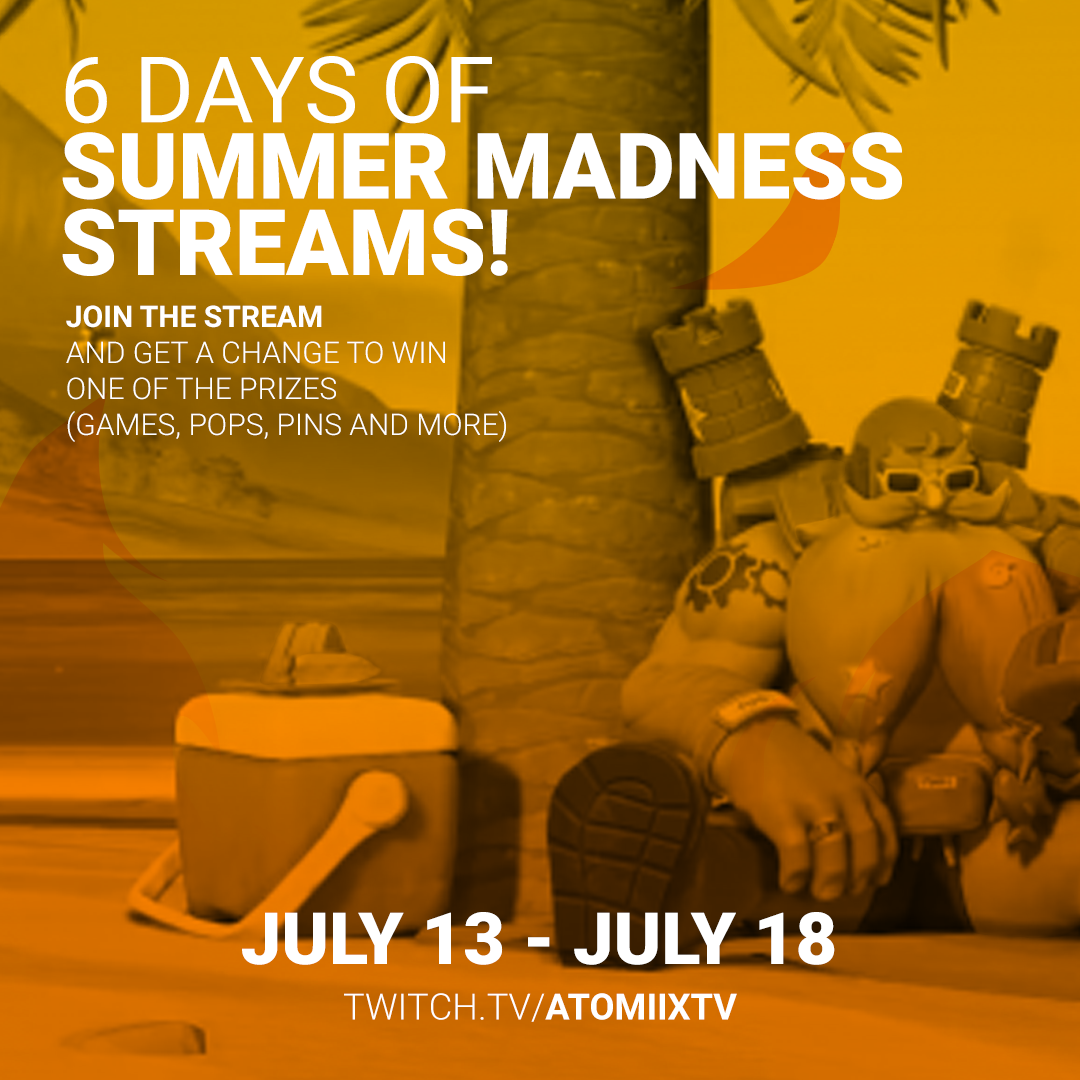 Welcome to the 6 days of Summer Madness! I'll be giving away a gift on every stream this week, including a bigger gift on saturday! Come join us! http://twitch.tv/atomiixtv Praise Reekmo! #stream #overwatch #twitch #gaming #atomiixstream #blizzard