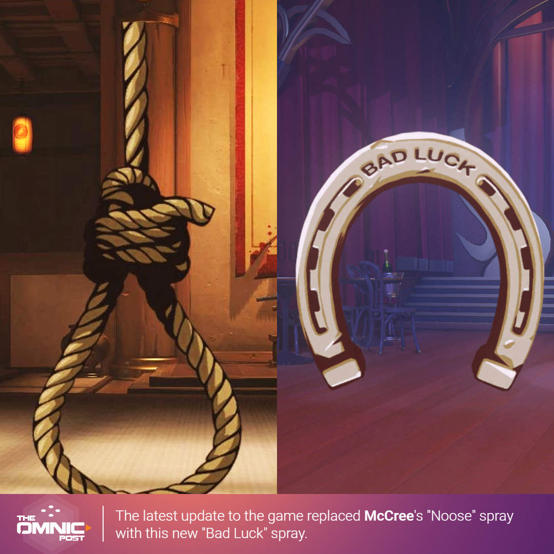 I'm gonna be honest I think it should've stayed. McCree's style is the old west and with the noose spray it added to that style. This game is rated Teen and I think a noose meets that age level. I think the bad luck spray would've added more if it didn't replace it.