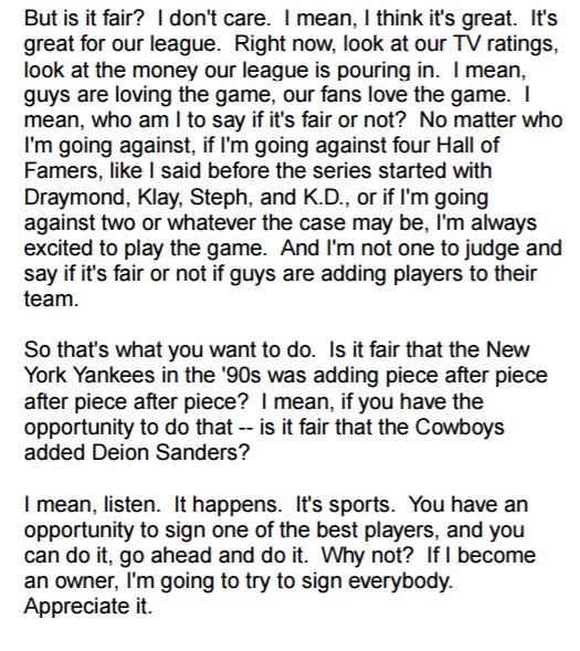 One of the underappreciated things about LeBron is his thoughtfulnesshttps://twitter.com/bengolliver/status/872881886200303616 …