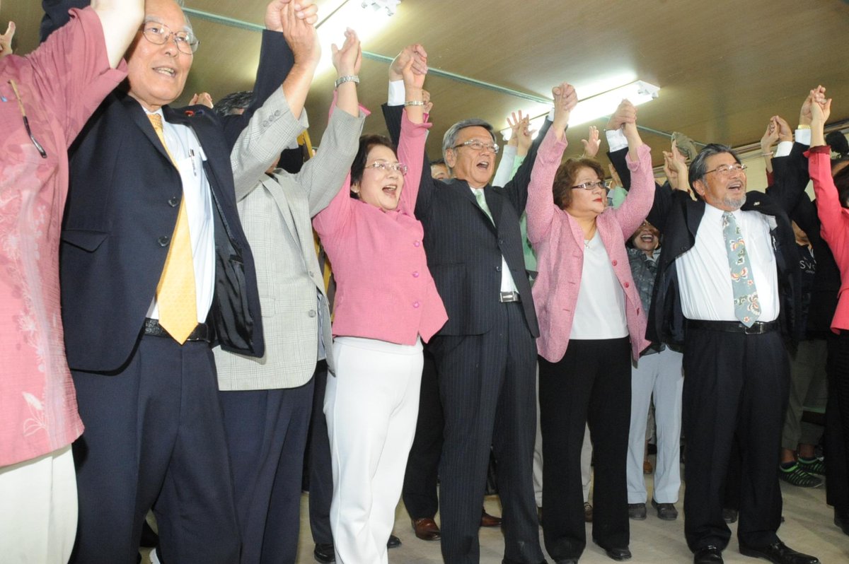 #沖縄県知事選 オナガ雄志候補、城間みきこ那覇市長候補が当選を決めました。歴史が動いた結果をうけオナガ氏は、保革の枠組みを超えた県民、「オール沖縄」の期待に応え、がんばる決意を表明しました。(文責:ITスタッフ)pic.twitter.com/u9tmmtf9f5
