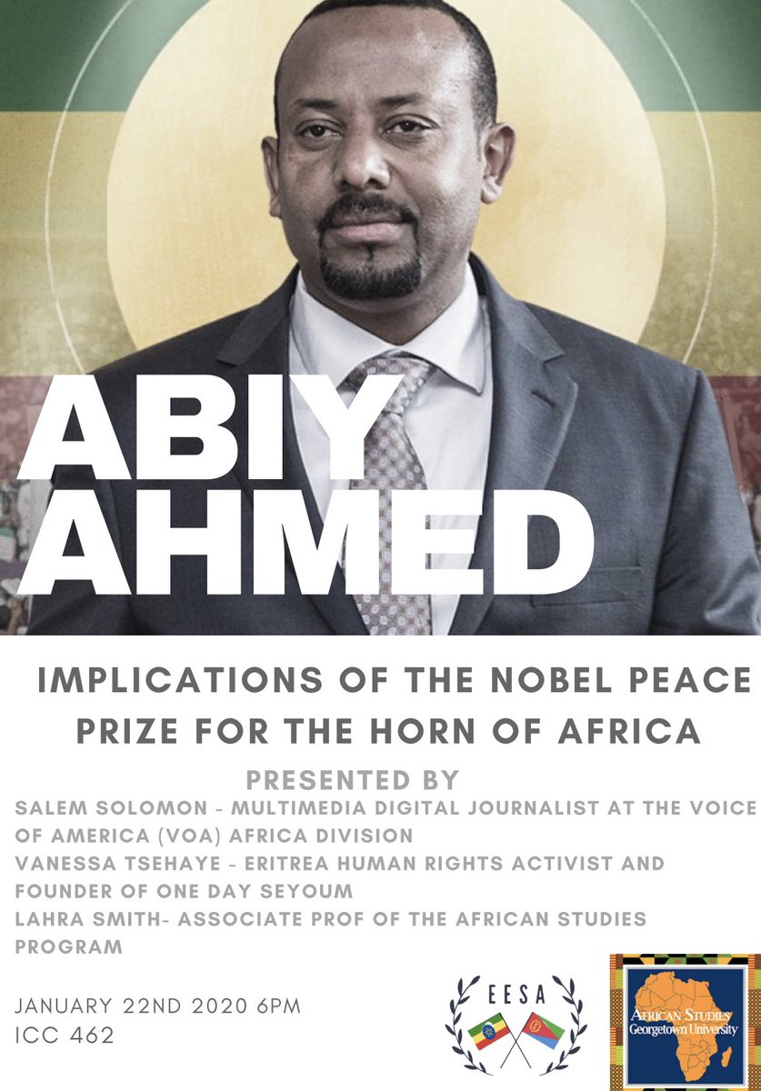 Georgetown University's Eritrean Ethiopian Students Association & African Studies Department is hosting a panel today titled: "Implications of the Nobel Prize for Ethiopian PM Abiy Ahmed for Regional Stability in the Horn of Africa" with