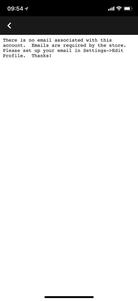 @onedroptoday just logged into app via facebook, email is defined but get this when viewing the store.pic.twitter.com/ztXyOMQB8e