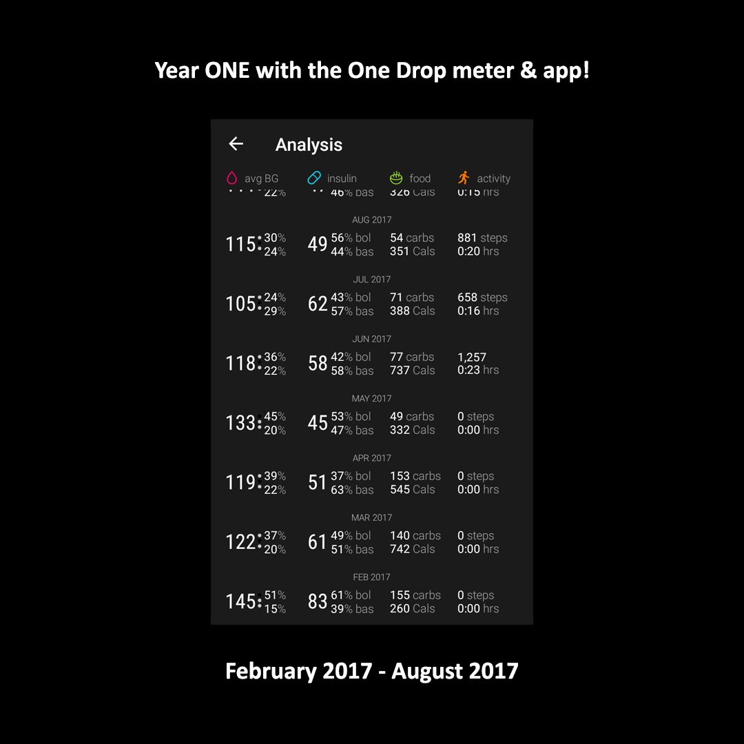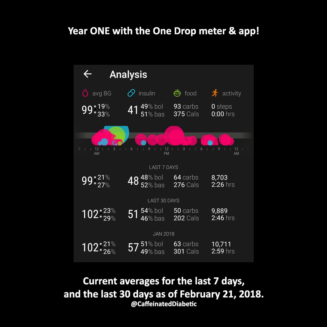 Monday, February 26th, marked my one year @onedroptoday meterversary. Here are my blood sugar averages for each month from the app, so far. Based on my average number I checked each day, I pricked by finger over 6,200 times the last year. Thanks for all the strips, @onedroptoday!pic.twitter.com/imU9E59hYo