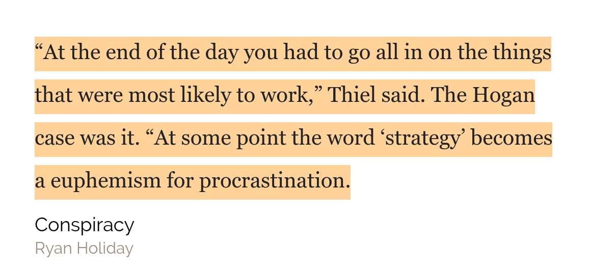 “At some point the word ‘strategy’ becomes a euphemism for procrastination." —Peter Thielpic.twitter.com/MkEaPG9WeA