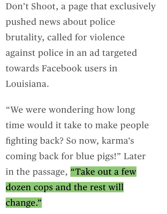 One Russian Facebook post, posing as African-Americans and targeting Louisianans interested in "social justice," called for people to "take out a few dozen cops and the rest will change" before protests in Baton Rouge. http://nbcnews.com/tech/tech-news/sean-hannity-black-lives-matter-among-targets-russian-influence-campaign-n872926 …pic.twitter.com/GQdjrk9Z4X