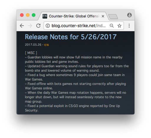 CS:GO credits One Up Security, LLC for security vulnerability. Interested in securing your software? Visit us at https://oneupsecurity.com .pic.twitter.com/ZFcfkCn9dM