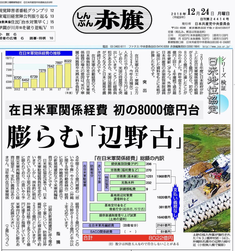 在日米軍経費がはじめて8千億円台突破、過去最高に。その半分以上は、条約で支払い義務なし。 米兵1人に1308万円。こんな大盤振る舞いしてくれる国は、世界で日本だけ。 消費税で庶民に重い負担をおわせ、社会保障は最大限削り、外国軍に気前よく税金バラまく。自民公明の政治、おかしくない?pic.twitter.com/BUx1ZPnWIz