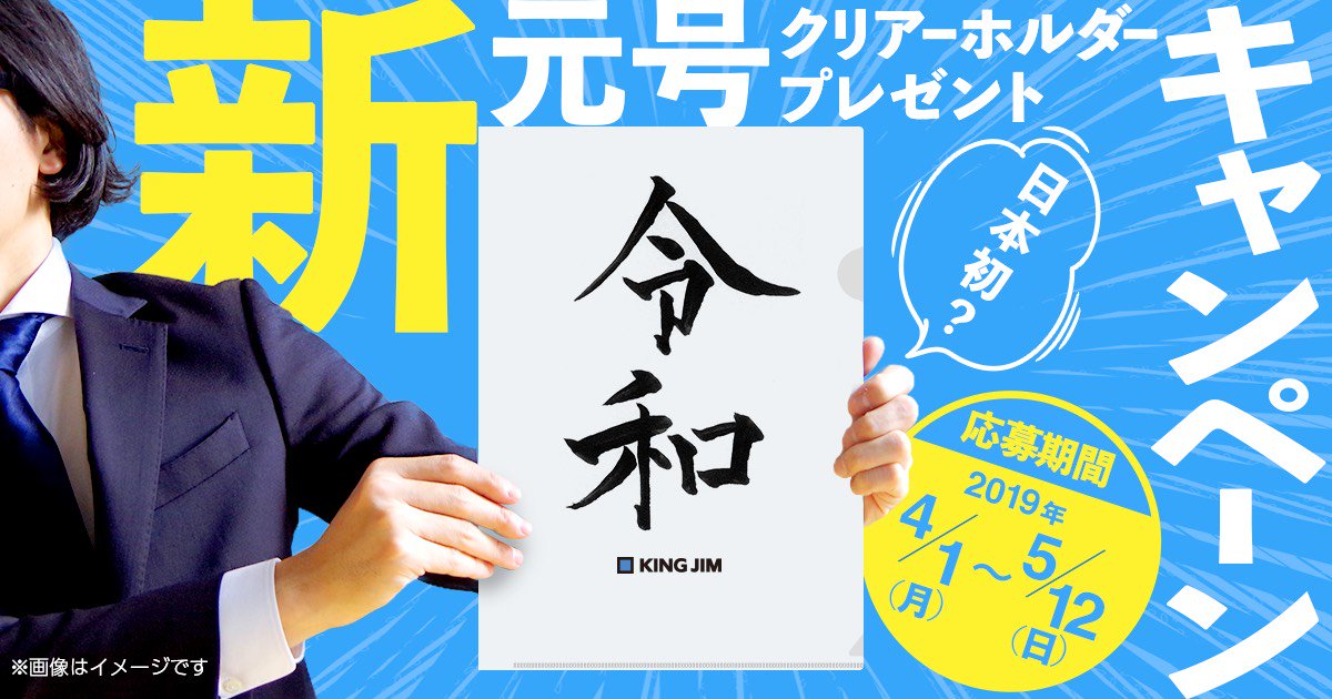 @kingjimをフォロー&この投稿をRTで【 新元号の『令和』入りクリアーホルダー】を抽選で100名様にプレゼント! http://kingjim.jp/gengoh#新元号#令和pic.twitter.com/88fB6ht8w3