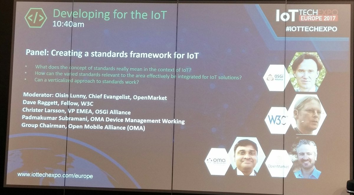 #IoTTechExpo! OMA's DM Chair joins the panel, "Creating a Standards Framework for#IoT" - Join us at 10:40! http://hubs.ly/H07BRXy0 pic.twitter.com/ijJwKFKzJY