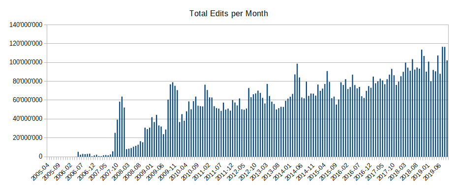 Over the past quarter we have, for the first time, sustained an editing rate of over 100,000,000 edits per month! Stats are newly updated at: https://wiki.openstreetmap.org/wiki/Stats#Edits_per_month …pic.twitter.com/ougSYhiCtg
